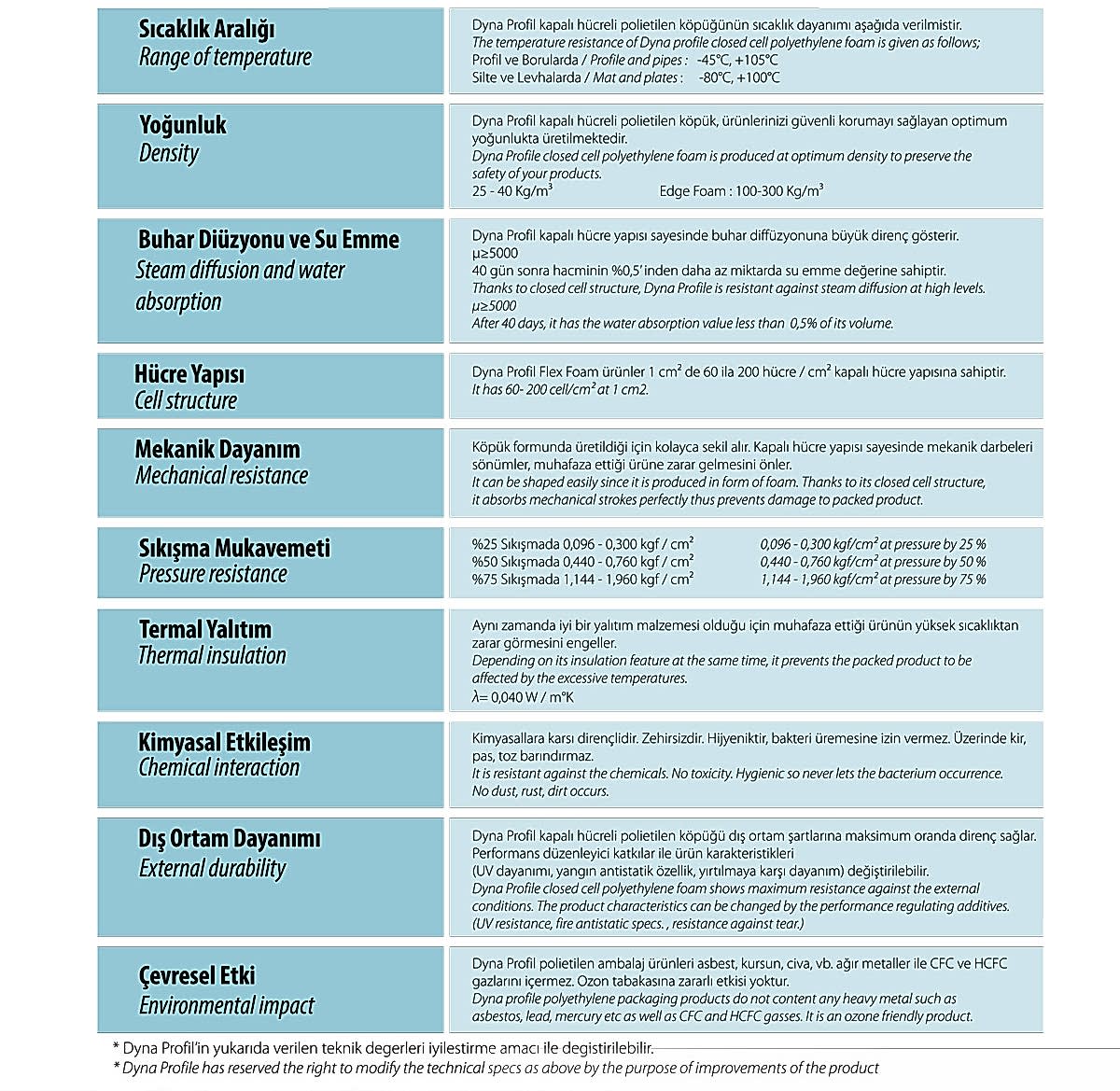 - Köpük formundan dolayı mekanik darbeleri sönümleyebilme özelligi